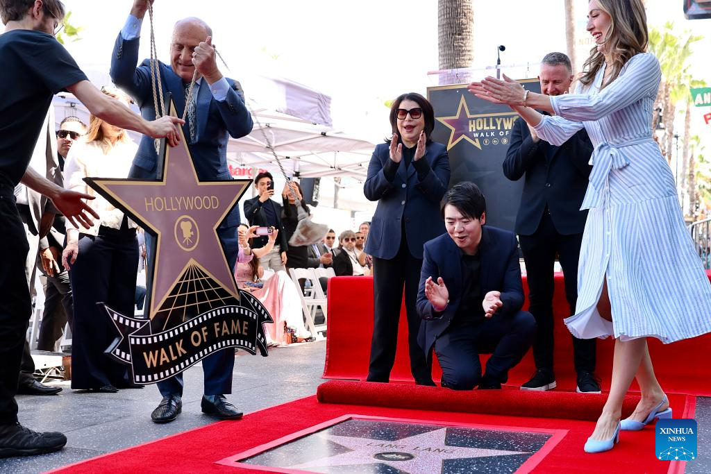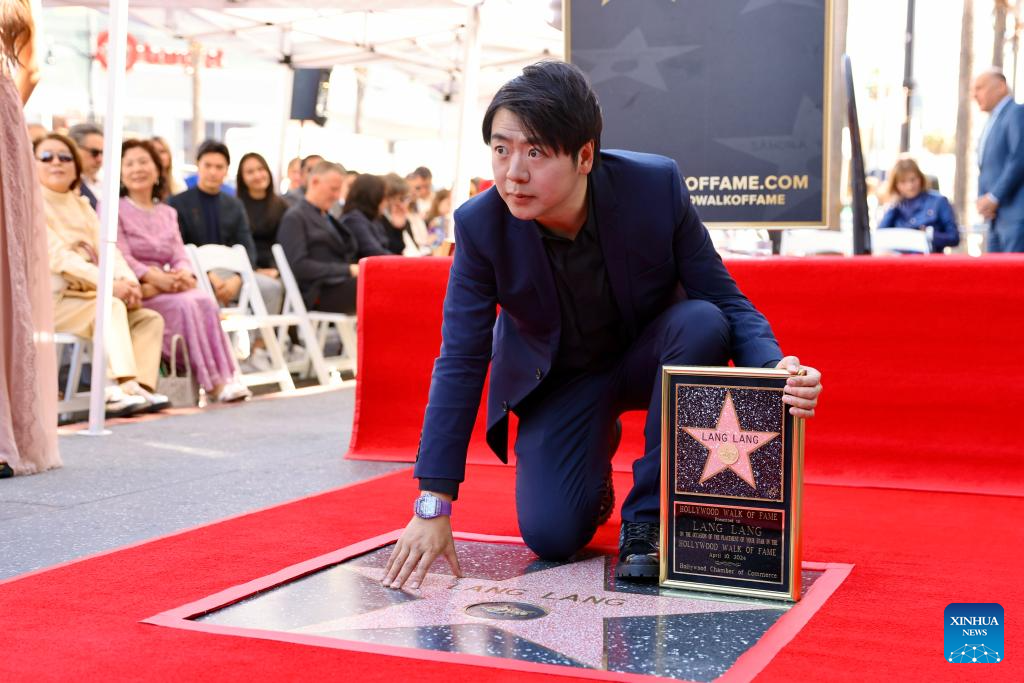 LOS ANGELES, 11 abril, 2024 (Xinhua) -- Imagen del 10 de abril de 2024 del pianista chino Lang Lang asistiendo a su ceremonia del Paseo de la Fama de Hollywood, en Los Angeles, California, Estados Unidos. El pianista chino Lang Lang fue honrado con una estrella en el Paseo de la Fama de Hollywood en Los Angeles el miércoles, en la categoría de interpretación en vivo. (Xinhua)