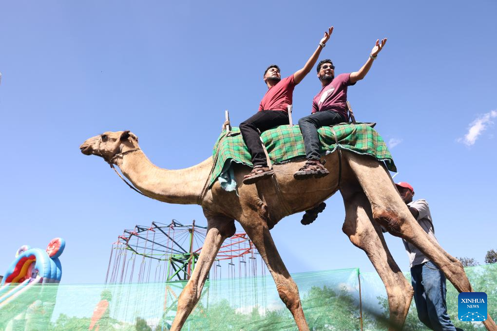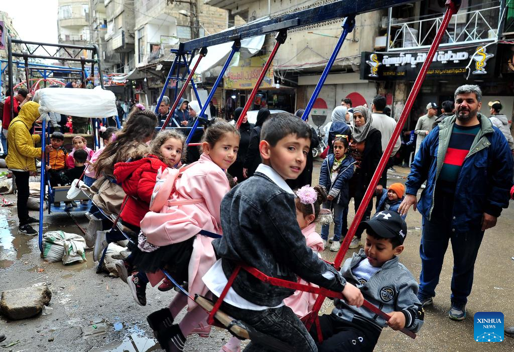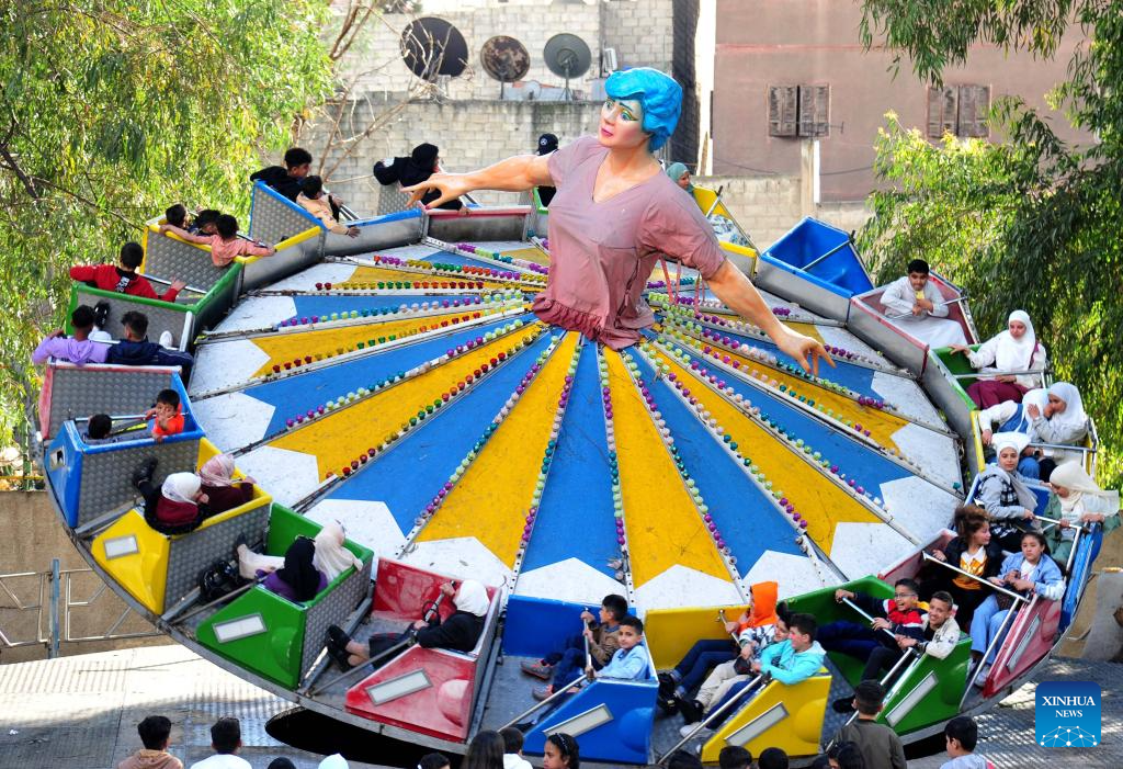 DAMASCO, 11 abril, 2024 (Xinhua) -- Imagen del 10 de abril de 2024 de niños disfrutando su tiempo libre durante las vacaciones por el Eid al-Fitr, en Damasco, Siria. (Xinhua/Ammar Safarjalani)