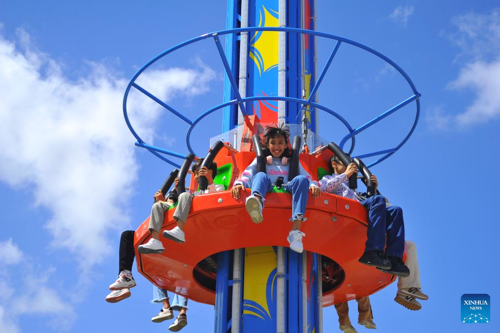 TUNEZ, 11 abril, 2024 (Xinhua) -- Imagen del 10 de abril de 2024 de niños divirtiéndose en un parque de diversiones durante las vacaciones del Eid al-Fitr, en Túnez, Túnez. (Xinhua/Adel Ezzine)