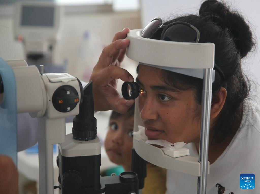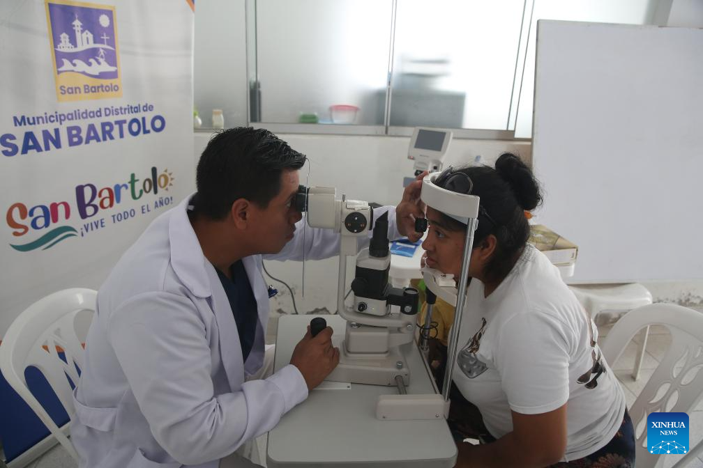 LIMA, 11 abril, 2024 (Xinhua) -- Un oftalmólogo realiza un examen de la vista a una paciente durante la Campaña Gratuita de Salud Visual organizada por la municipalidad de San Bartolo en colaboración con Oftalmo Prevención y Optometryc Center, en el distrito de San Bartolo, en Lima, Perú, el 11 de abril de 2024. (Xinhua/Mariana Bazo)