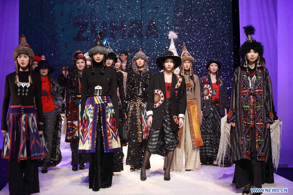 Desfile de moda con elementos tradicionales de Kirguistán