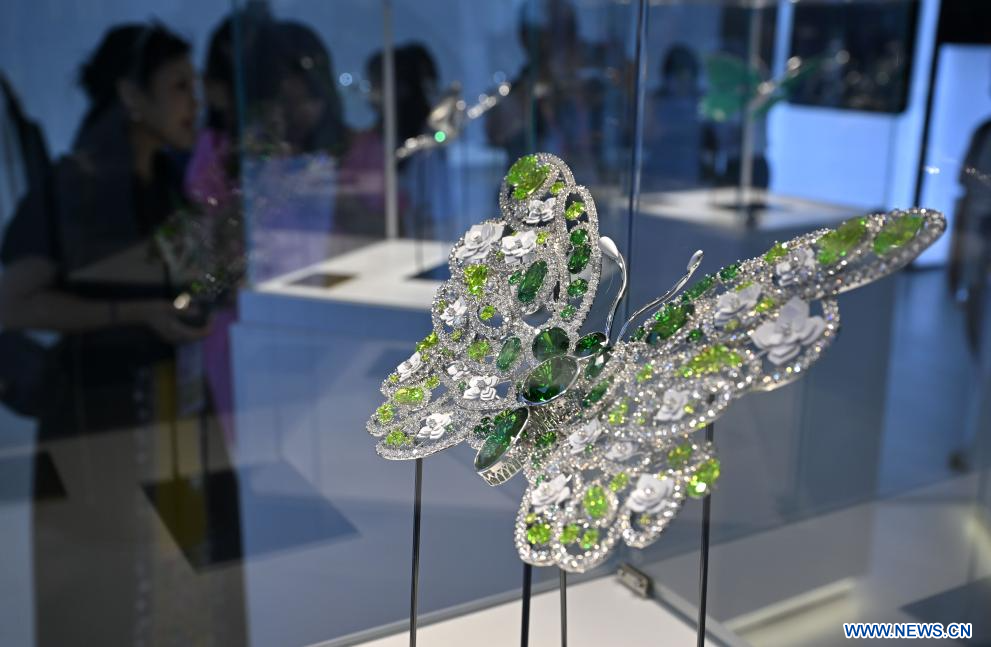 HAIKOU, 13 abril, 2024 (Xinhua) -- Una pieza de joyería diseñada con inteligencia artificial es exhibida en la IV Exposición Internacional de Productos de Consumo de China, en Haikou, capital de la provincia de Hainan, en el sur de China, el 13 de abril de 2024. China lanzó el sábado una serie de eventos de consumo global en la IV Exposición Internacional de Productos de Consumo de China, que se inauguró el mismo día en Haikou, capital de la provincia meridional de Hainan. El evento, que irá hasta el 18 de abril, recibe a más de 4.000 marcas de 71 países y regiones, las cuales exhiben sus productos más novedosos y de alta gama para los consumidores globales, según el organizador. (Xinhua/Guo Cheng)