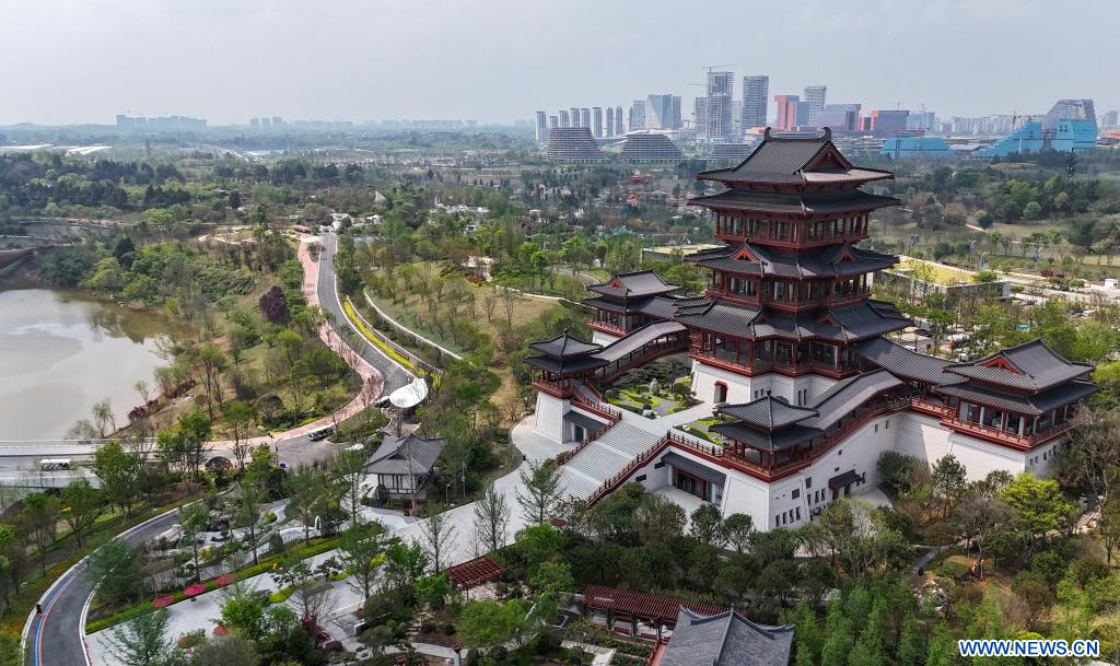 CHENGDU, 13 abril, 2024 (Xinhua) -- Imagen del 12 de abril de 2024 de una vista del recinto de la Exposición Internacional de Horticultura 2024 Chengdu, en Chengdu, en la provincia de Sichuan, en el suroeste de China. La exposición se celebrará del 26 de abril al 28 de octubre, periodo durante el cual tendrán lugar más de 2.000 eventos y actividades culturales. (Xinhua/Wang Xi)