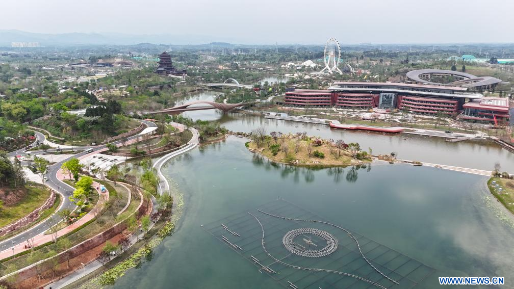 CHENGDU, 13 abril, 2024 (Xinhua) -- Vista aérea tomada con un dron el 12 de abril de 2024 del recinto principal de la Exposición Internacional de Horticultura 2024 Chengdu, en Chengdu, en la provincia de Sichuan, en el suroeste de China. La exposición se celebrará del 26 de abril al 28 de octubre, periodo durante el cual tendrán lugar más de 2.000 eventos y actividades culturales. (Xinhua/Wang Xi)
