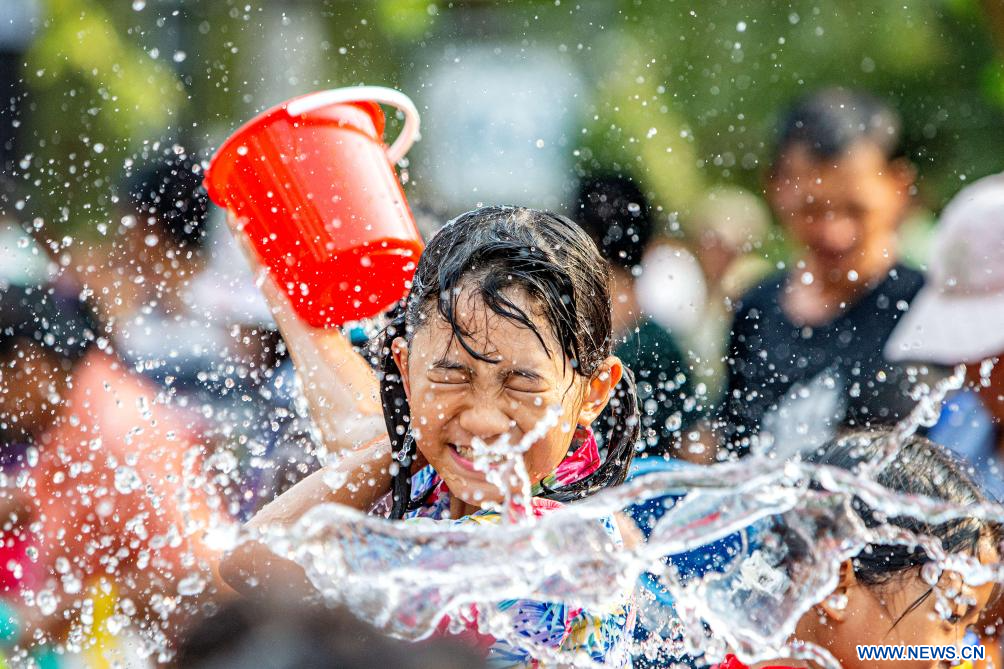 AYUTTHAYA, 13 abril, 2024 (Xinhua) -- Personas se salpican agua unos a otros en celebración del Festival Songkran, en Ayutthaya, Tailandia, el 13 de abril de 2024. El Festival Songkran, el tradicional Año Nuevo tailandés, es celebrado del 13 al 15 de abril de cada año, durante el cual las personas se saludan salpicándose agua unos a otros. (Xinhua/Wang Teng)