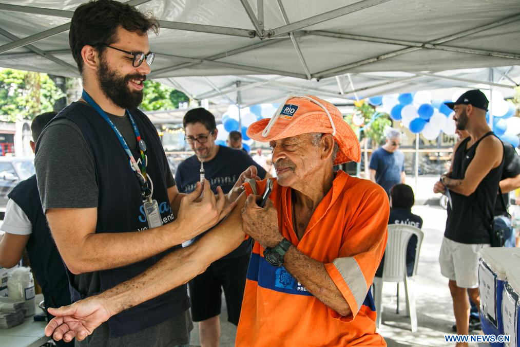 RIO DE JANEIRO, 13 abril, 2024 (Xinhua) -- Imagen del 13 de abril de 2024 de un centro de vacunación en la plaza Nelson Mandela, en Botafogo, Río de Janeiro, Brasil. (Xinhua/Claudia Martini)