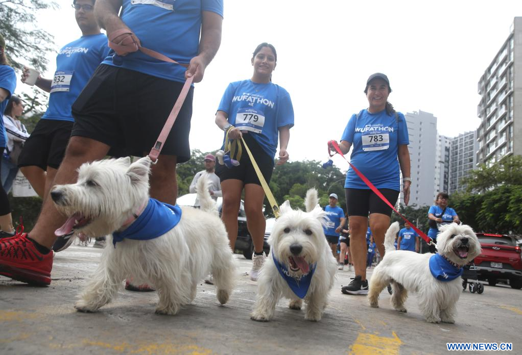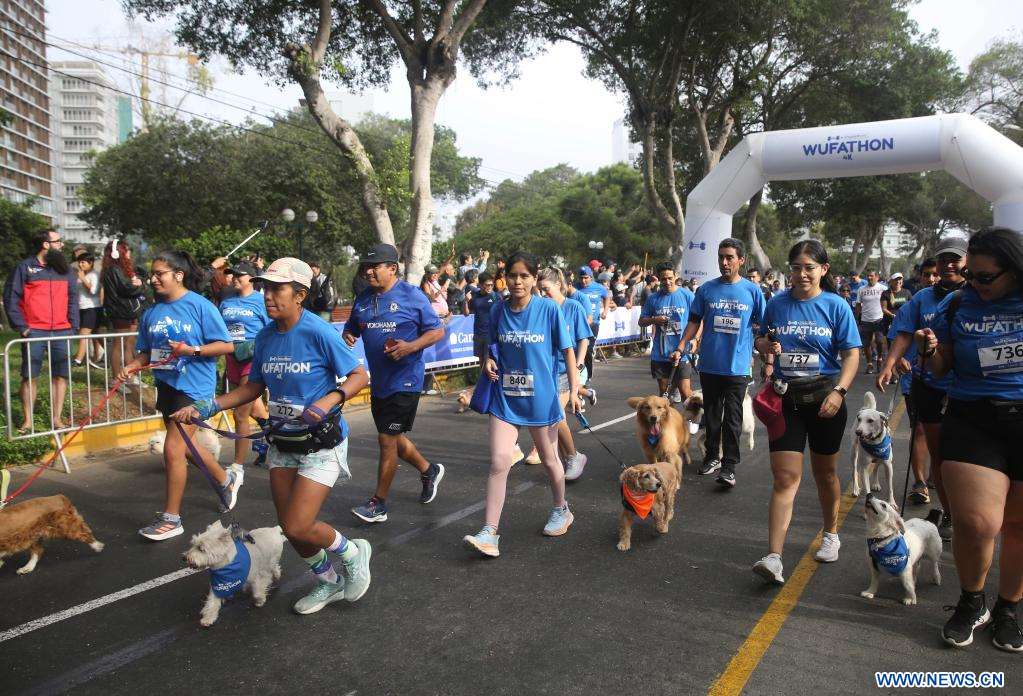 LIMA, 14 abril, 2024 (Xinhua) -- Deportistas y sus perros participan en el evento "Trote y Caminata Wufathon 4k", en el distrito de Barranco, en Lima, Perú, el 14 de abril de 2024. (Xinhua/Mariana Bazo)