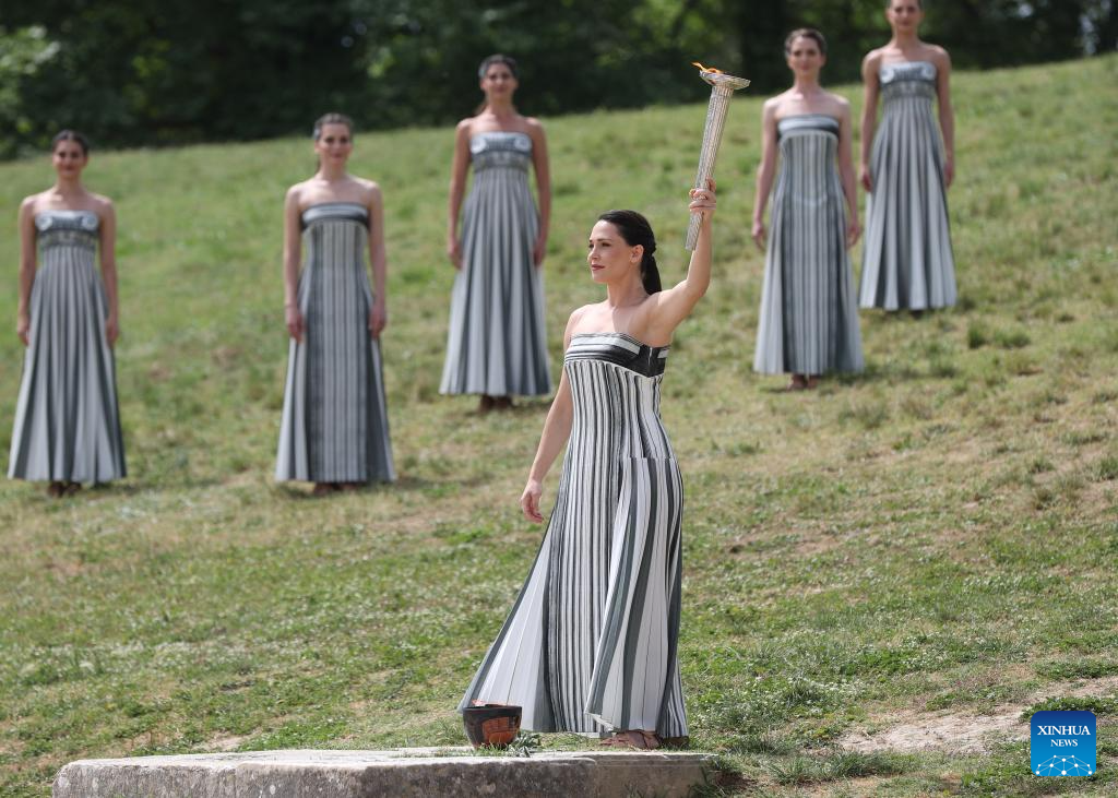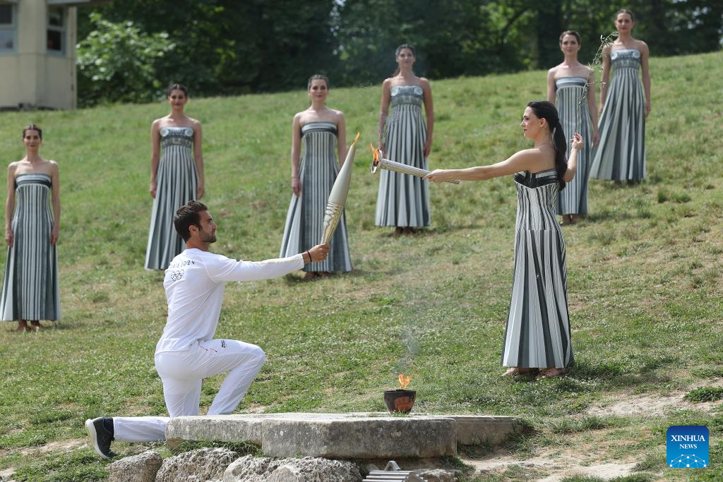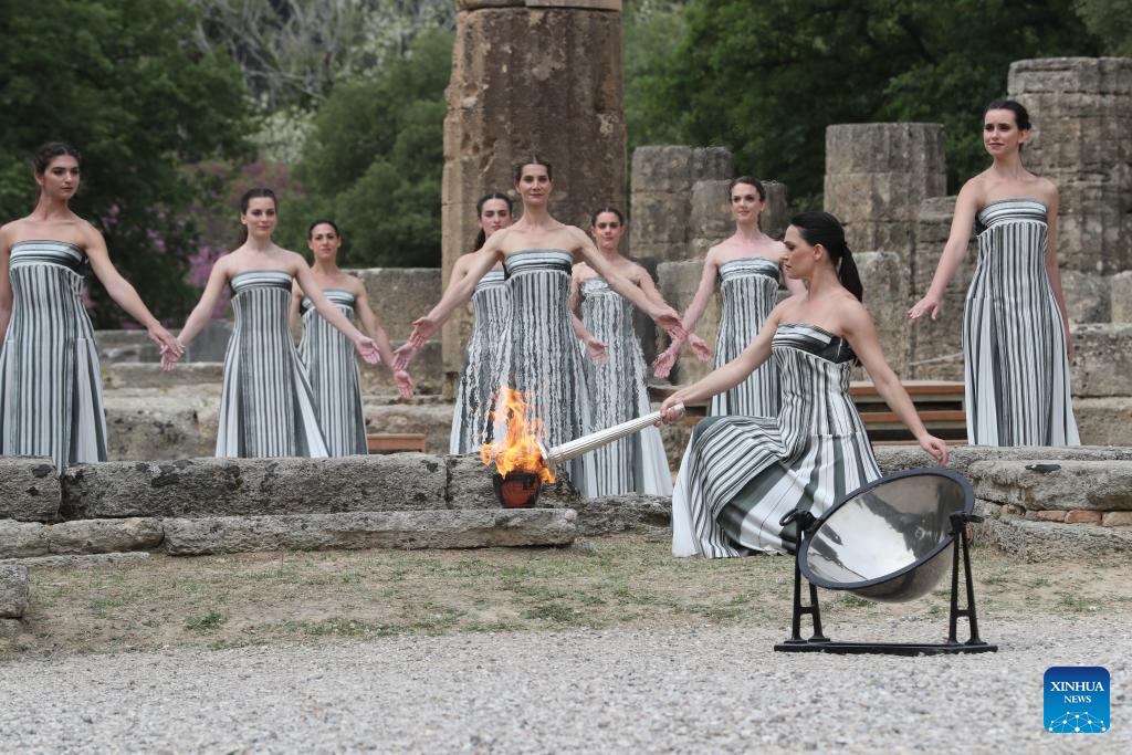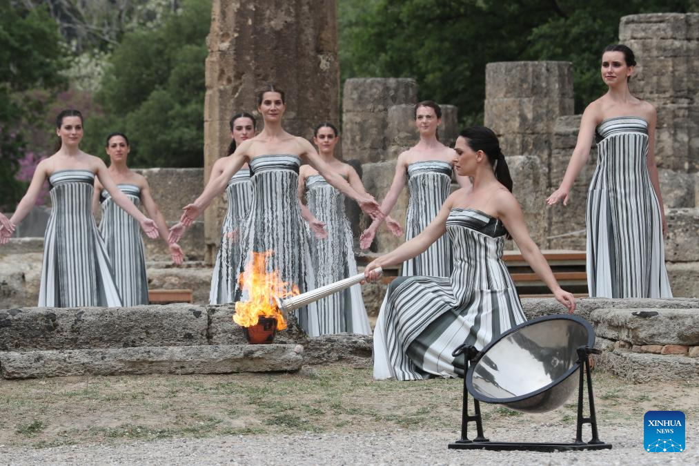 ANTIGUA OLIMPIA, Grecia, 16 abr (Xinhua) -- La llama olímpica de los Juegos Olímpicos de París 2024 comenzó su recorrido después de ser encendida en el lugar de nacimiento de los Juegos en la antigua Olimpia, Grecia, el martes durante una ceremonia tradicional.