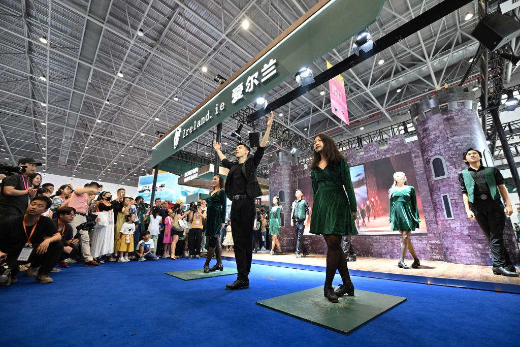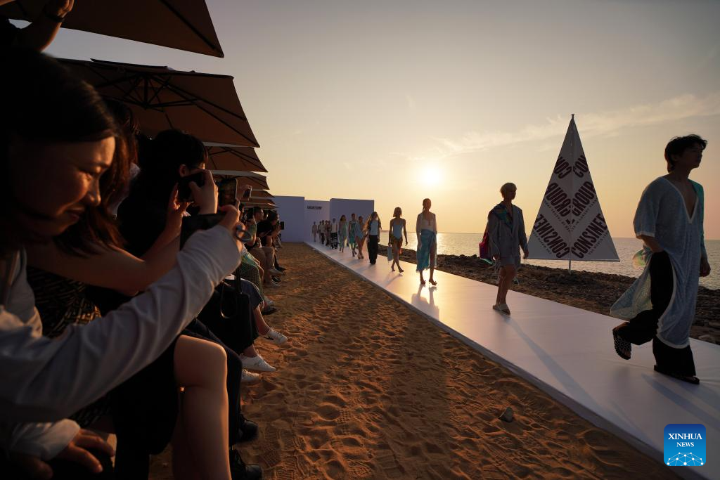 HAIKOU, 15 abril, 2024 (Xinhua) -- Modelos presentan creaciones durante un desfile de modas en la IV Exposición Internacional de Productos de Consumo de China (CICPE, por sus siglas en inglés), en Haikou, ciudad capital de la provincia de Hainan, en el sur de China, el 15 de abril de 2024. La exposición, que comenzó el sábado y durará hasta el 18 de abril, es la única exposición a nivel nacional de China que presenta productos de consumo y también la mayor exposición de consumo en la región de Asia y el Pacífico. (Xinhua/Yang Guanyu)