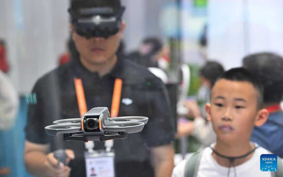 HAIKOU, 15 abril, 2024 (Xinhua) -- Un empleado opera un dron en el estand del fabricante chino de drones DJI en la IV Exposición Internacional de Productos de Consumo de China (CICPE, por sus siglas en inglés), en Haikou, ciudad capital de la provincia de Hainan, en el sur de China, el 15 de abril de 2024. Del 13 al 18 de abril, la exposición, con el tema "Compartir oportunidades abiertas, co-crear una vida mejor", albergará a más de 4.000 marcas de 71 países y regiones, mostrando sus productos novedosos y de lujo para los consumidores de todo el mundo. (Xinhua/Guo Cheng)