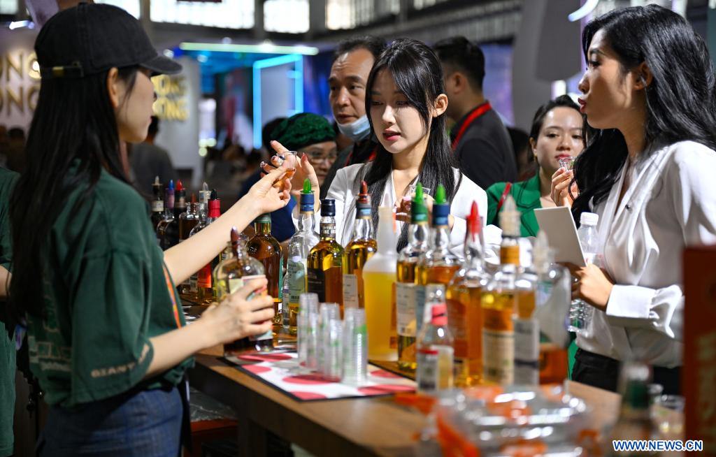 HAIKOU, 14 abril, 2024 (Xinhua) -- Visitantes prueban vino en el pabellón nacional de Irlanda durante la IV Exposición Internacional de Productos de Consumo de China (CICPE, por sus siglas en inglés), en Haikou, capital de la provincia de Hainan, en el sur de China, el 14 de abril de 2024. Del 13 al 18 de abril, la exposición, con el tema "Compartir oportunidades abiertas, co-crear una vida mejor", albergará a más de 4.000 marcas de 71 países y regiones, mostrando sus productos novedosos y de lujo para los consumidores de todo el mundo. Irlanda es el invitado de honor en la exposición de este año, con un lugar de exposición dedicado que muestra la innovación científica y tecnológica, la educación, la inversión, el turismo y la cultura del país. (Xinhua/Guo Cheng)