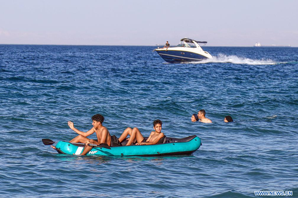 SUEZ, 13 abril, 2024 (Xinhua) -- Imagen del 12 de abril de 2024 de personas disfrutando del tiempo libre en el Mar Rojo durante la festividad de Eid al-Fitr, en la Gobernación de Suez, Egipto. (Xinhua/Ahmed Gomaa)