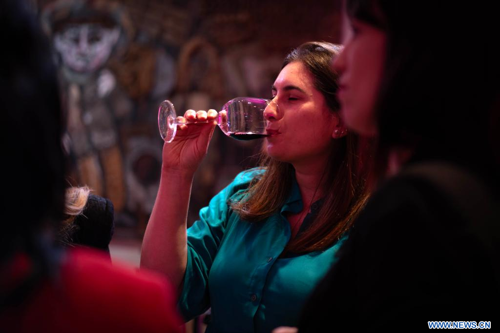 Imagen del 17 de abril de 2024 de una asistente bebiendo vino Malbec durante la 14ª edición del Día Mundial del Malbec, en el Palacio San Martín, sede de la Cancillería Argentina, en la ciudad de Buenos Aires, Argentina. Unas 18 bodegas de distintas regiones vitícolas de Argentina celebraron el jueves la 14ª edición del Día Mundial del Malbec, en un evento desarrollado en la Cancillería Argentina, donde con múltiples actividades se rindió homenaje a la cepa insignia del país sudamericano. (Xinhua/Martín Zabala)