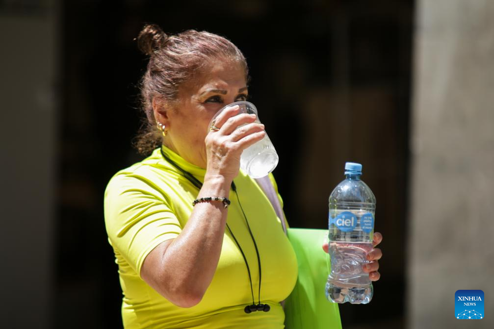CIUDAD DE MEXICO, 17 abril, 2024 (Xinhua) -- Imagen del 16 de abril de 2024 de una mujer refrescándose con una bebida fría, en la Ciudad de México, México. (Xinhua/Francisco Cañedo)