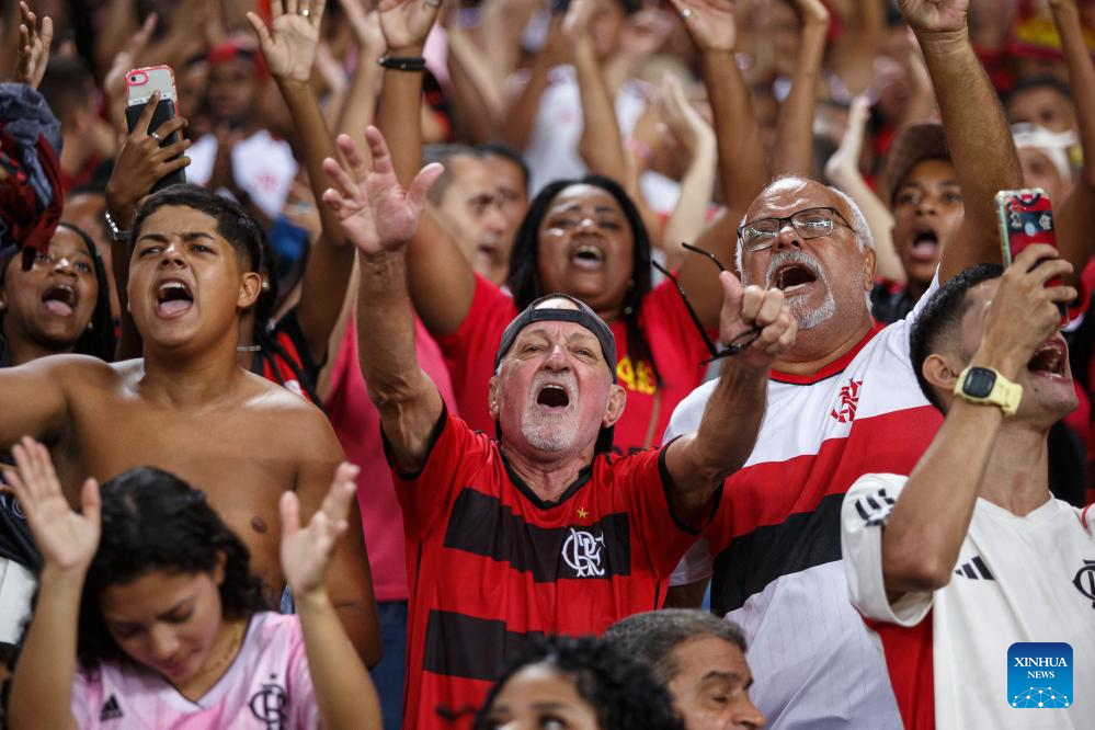 RÍO DE JANEIRO, 18 abril, 2024 (Xinhua) -- Imagen del 17 de abril de 2024 de aficionados de Flamengo reaccionando durante el partido correspondiente a la jornada 2 del Campeonato Brasileño Serie A, ante Sao Paulo, celebrado en el Estadio Maracaná, en Río de Janeiro, Brasil. (Xinhua/Claudia Martini)
