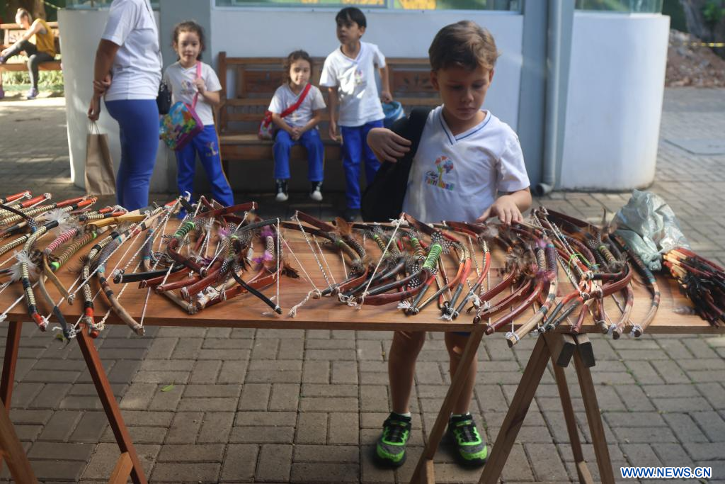 SAO PAULO, 19 abril, 2024 (Xinhua) -- Un niño observa artesanías en una feria que forma parte de las celebraciones del Día de los Pueblos Indígenas en el Museo de Culturas Indígenas, en Sao Paulo, Brasil, el 19 de abril de 2024. (Xinhua/Rahel Patrasso)