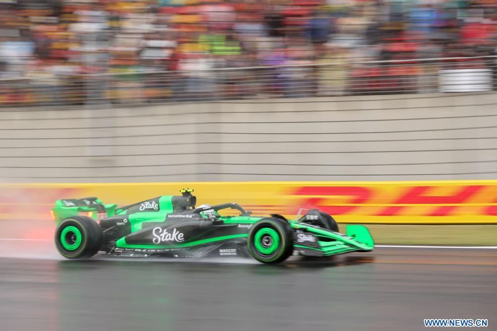 SHANGHAI, 19 abril, 2024 (Xinhua) -- El piloto chino de la escudería Kick Sauber, Zhou Guanyu, compite durante la clasificación para el sprint del Gran Premio de China de Fórmula Uno, en el Circuito Internacional de Shanghai, en Shanghai, China, el 19 de abril de 2024. (Xinhua/Wang Xiang)