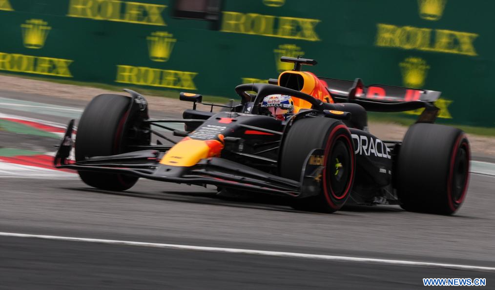 SHANGHAI, 19 abril, 2024 (Xinhua) -- El piloto neerlandés de la escudería Red Bull, Max Verstappen, compite durante la primera sesión de prácticas del Gran Premio de China de Fórmula Uno, en el Circuito Internacional de Shanghai, en Shanghai, en el este de China, el 19 de abril de 2024. (Xinhua/Xia Yifang)