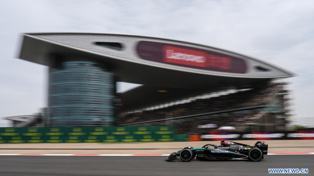 SHANGHAI, 19 abril, 2024 (Xinhua) -- El piloto británico de la escudería Mercedes, Lewis Hamilton, compite durante la clasificación para el sprint del Gran Premio de China de Fórmula Uno, en el Circuito Internacional de Shanghai, en Shanghai, China, el 19 de abril de 2024. (Xinhua/Wang Xiang)
