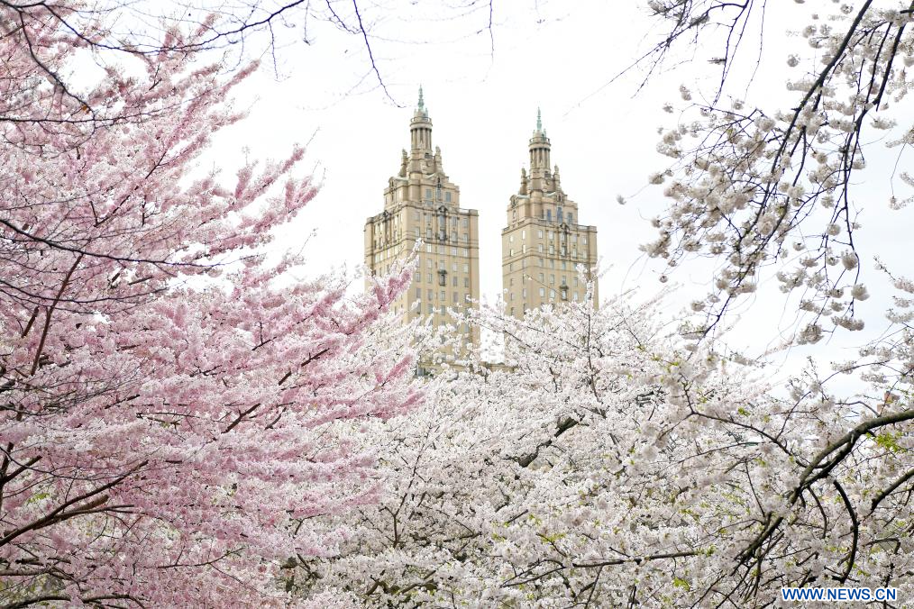 NUEVA YORK, 7 abril, 2024 (Xinhua) -- Imagen del 6 de abril de 2024 de flores de cerezo vistas en Central Park, en Nueva York, Estados Unidos. (Xinhua/Li Rui)
