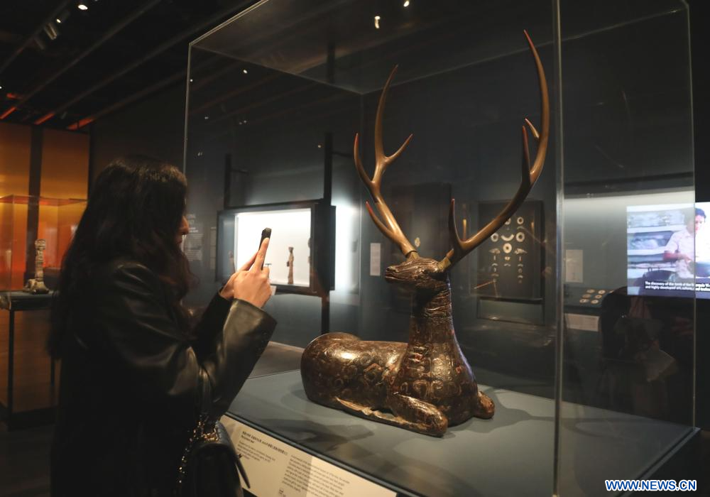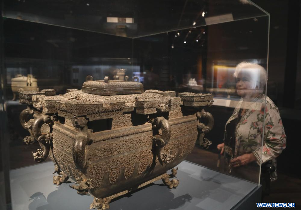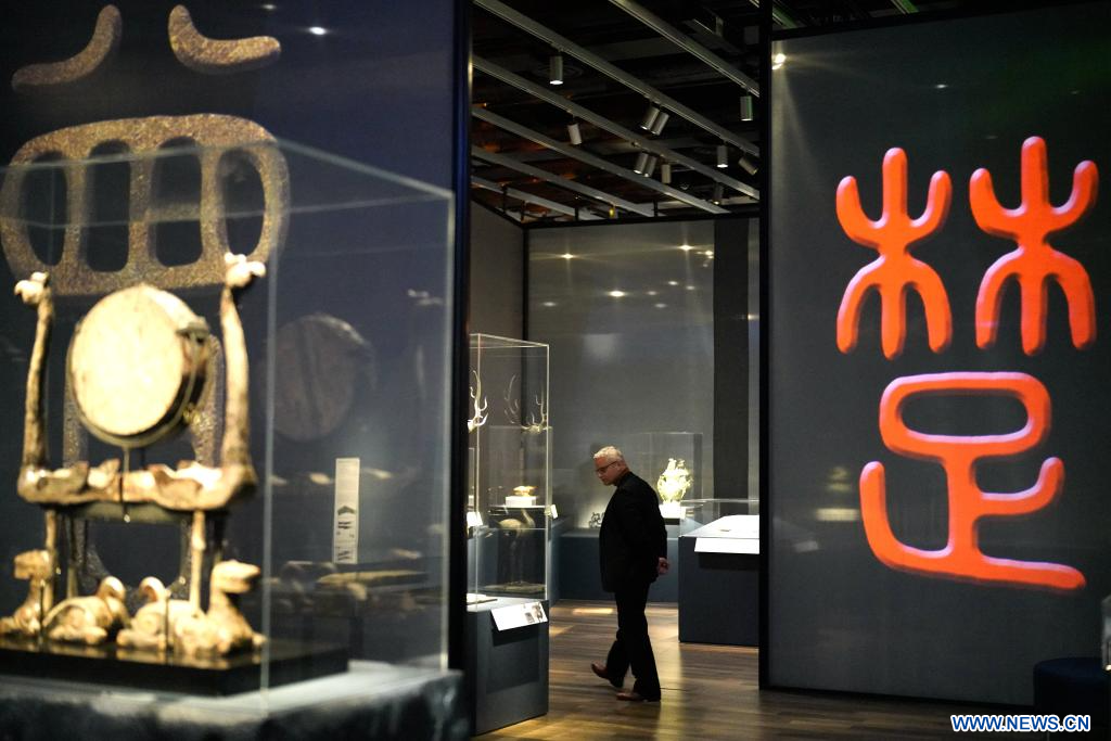 SAN FRANCISCO, 20 abril, 2024 (Xinhua) -- Imagen del 19 de abril de 2024 de un visitante observando artículos expuestos en una importante exposición de reliquias culturales chinas de la Edad del Bronce de China, en San Francisco, California, Estados Unidos. La exposición, llevada a cabo en el Museo de Arte Asiático en San Francisco, se inauguró el viernes. Titulada "Reinos del Fénix: El último esplendor de la Edad del Bronce de China", muestra más de 260 obras de los antiguos reinos chinos Chu y Zeng de la dinastía multiestado Zhou. (Xinhua/Wu Xiaoling)