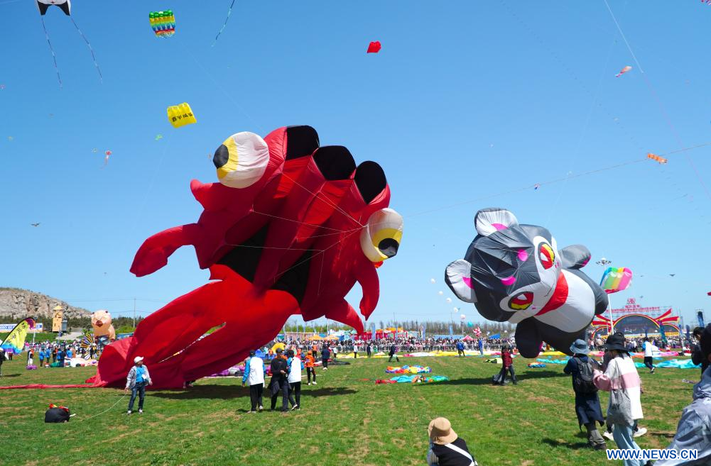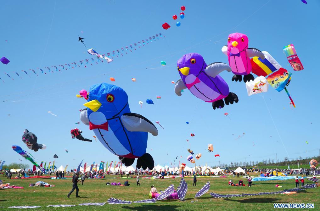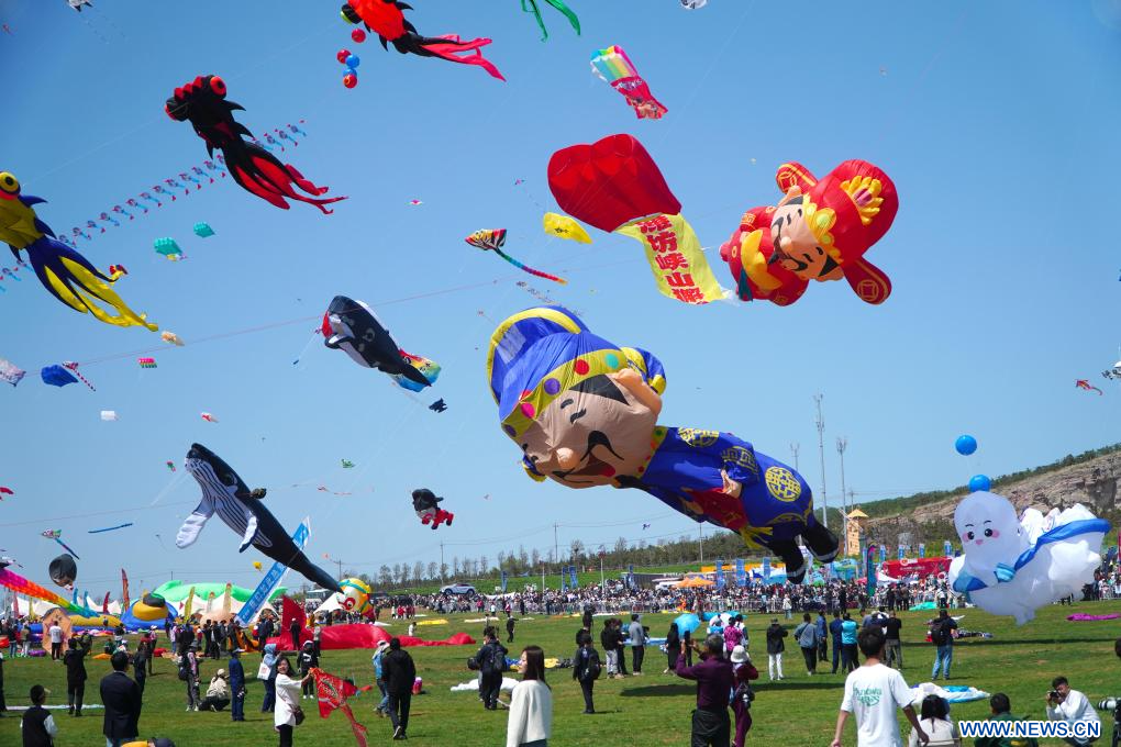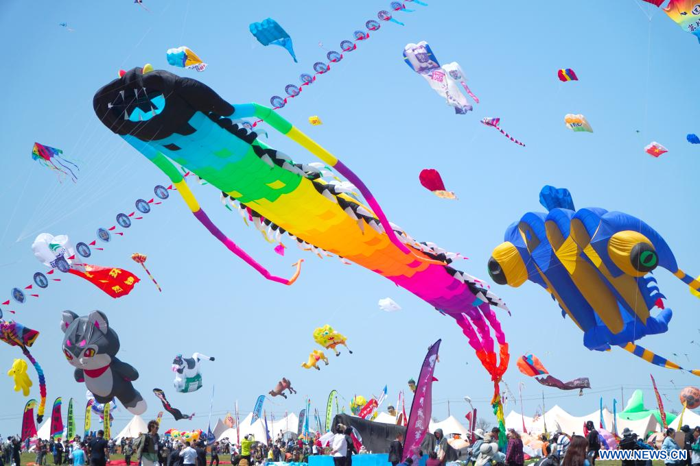 WEIFANG, 20 abril, 2024 (Xinhua) -- Aficionados a las cometas vuelan cometas en el 41º Festival Internacional de Cometas de Weifang, en Weifang, en la provincia de Shandong, en el este de China, el 20 de abril de 2024. El festival anual de cometas comenzó aquí el sábado. (Xinhua/Xu Suhui)