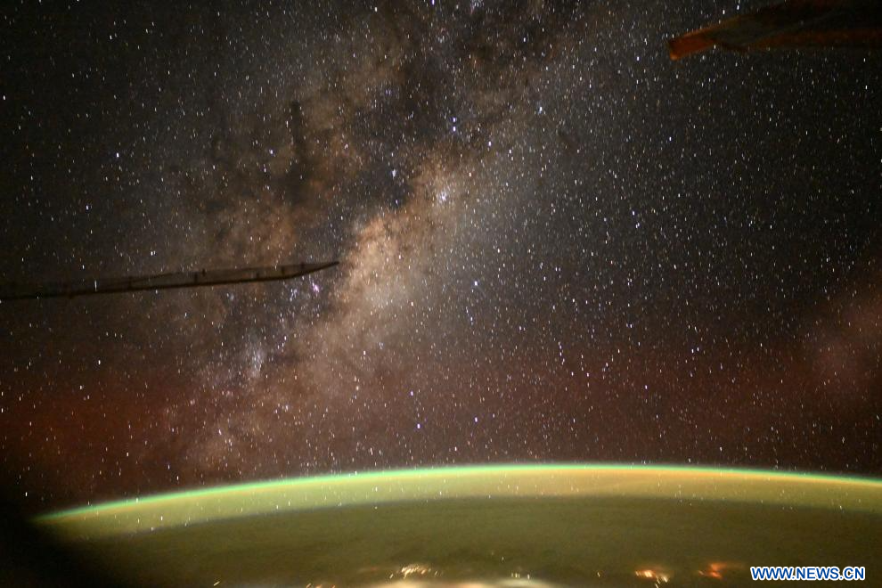 BEIJING, 19 abril, 2024 (Xinhua) -- Imagen sin fechar tomada por Tang Shengjie, miembro de la tripulación de Shenzhou-17, desde la estación espacial de China de una vista del cosmos. (Xinhua)
