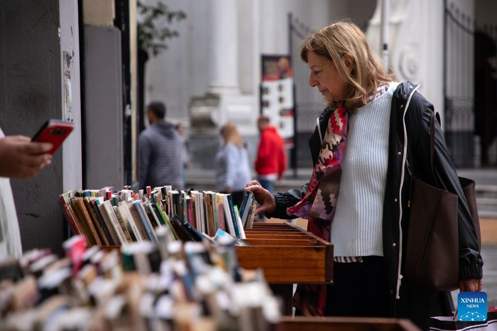 BUENOS AIRES, 22 abril, 2024 (Xinhua) -- Una mujer escoge libros en un estand de una librería, en el marco del Día Mundial del Libro, en la ciudad de Buenos Aires, Argentina. El Día Mundial del Libro se celebra anualmente cada 23 de abril para promover la lectura, la publicación y los derechos de autor. (Xinhua/Martín Zabala)