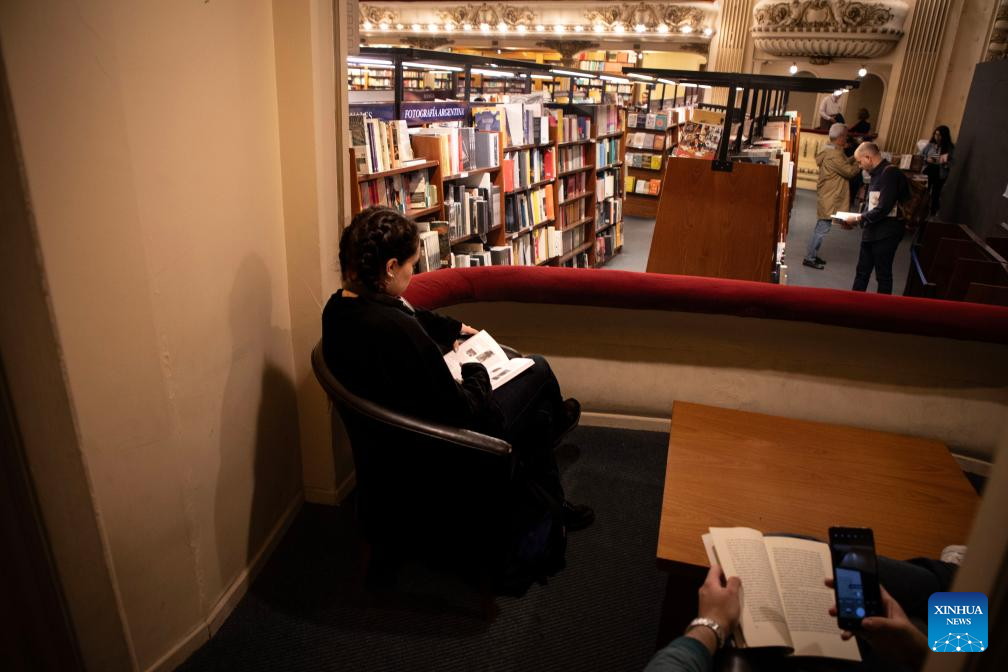 BUENOS AIRES, 22 abril, 2024 (Xinhua) -- Personas leen libros en la librería El Ateneo Grand Splendid, en el marco del Día Mundial del Libro, en la ciudad de Buenos Aires, Argentina. El Día Mundial del Libro se celebra anualmente cada 23 de abril para promover la lectura, la publicación y los derechos de autor. (Xinhua/Martín Zabala)
