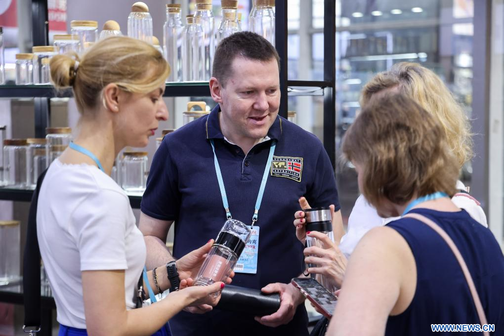 GUANGZHOU, 25 abril, 2024 (Xinhua) -- Imagen del 24 de abril de 2024 de compradores de Polonia aprendido sobre exhibiciones durante la 135ª sesión de la Feria de Importación y Exportación de China, en Guangzhou, en la provincia de Guangdong, en el sur de China. Hasta las 5:00 p.m. del martes, un total de 172.901 compradores de 214 países y regiones han atendido físicamente a la 135ª sesión de la Feria de Importación y Exportación de China, comúnmente conocida como Feria de Cantón, un incremento de 21,6 por ciento sobre el mismo periodo del año pasado. (Xinhua/Liu Dawei)