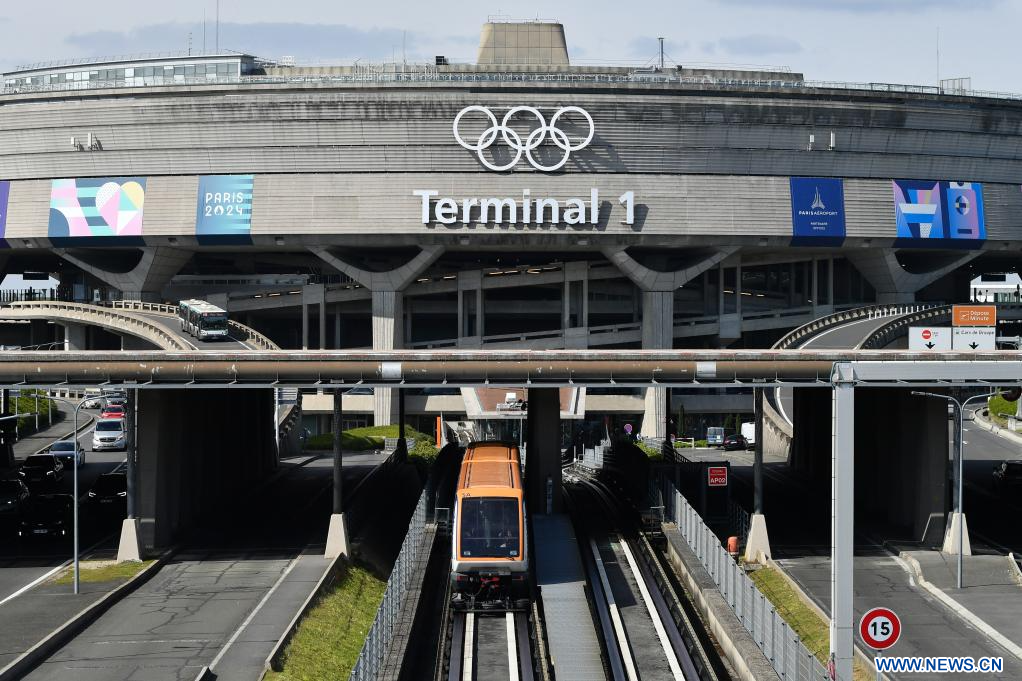 PARÍS, 24 abril, 2024 (Xinhua) -- Imagen del 23 de abril de 2024 de los anillos olímpicos en el Aeropuerto Roissy-Charles de Gaulle para los próximos Juegos Olímpicos de París 2024, cerca de París, Francia. (Xinhua/Julien Mattia)