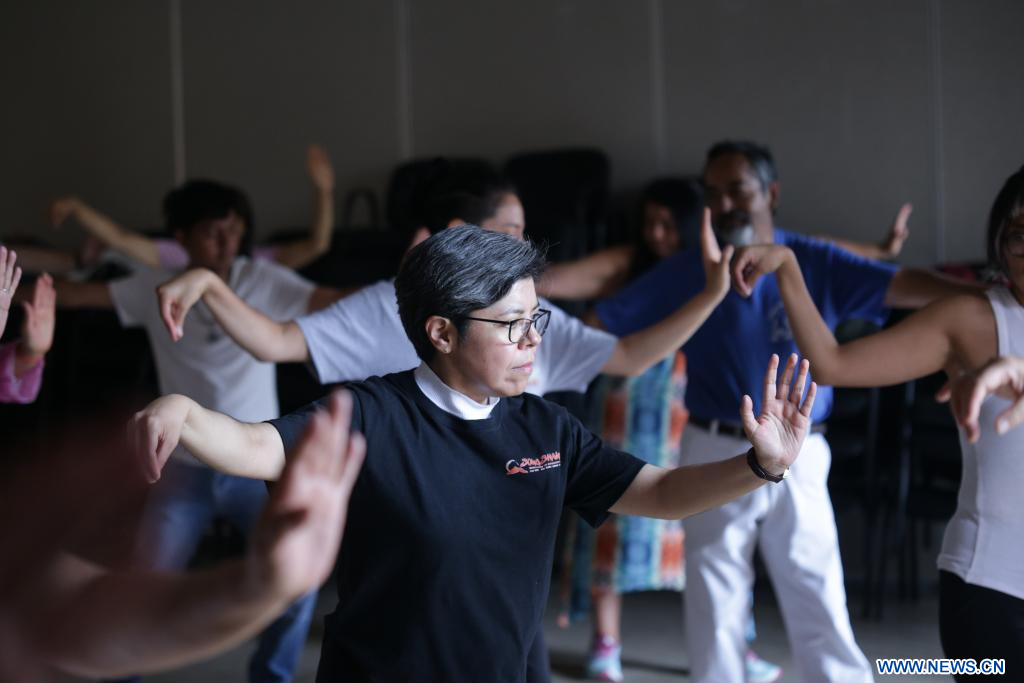 CIUDAD DE MEXICO, 27 abril, 2024 (Xinhua) -- La maestra Miriam Gloria Hernández imparte una clase gratuita de Tai Chi en el marco del Día Internacional del Tai Chi en el Museo Nacional de las Culturas del Mundo, en la Ciudad de México, capital de México el 27 de abril de 2024. (Xinhua/Francisco Cañedo)