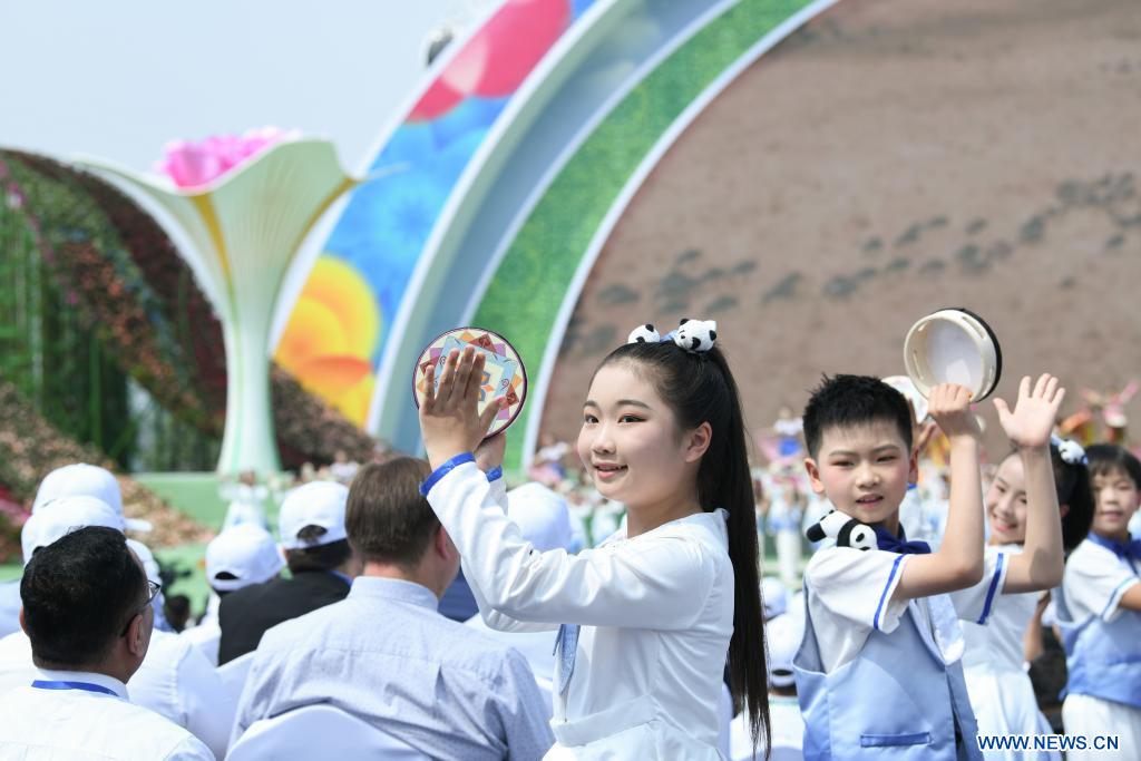 CHENGDU, 26 abril, 2024 (Xinhua) -- Imagen del 26 de abril de 2024 de un espectáculo en la ceremonia de apertura de la Exposición Internacional de Horticultura 2024 Chengdu, en Chengdu, en la provincia de Sichuan, en el suroeste de China. La Exposición Internacional de Horticultura 2024 Chengdu se inauguró el viernes en Chengdu, capital de la provincia de Sichuan, en el suroeste de China. Con un caleidoscopio de tecnologías hortícolas y artes de jardinería nacionales y extranjeras exhibidas durante el evento, ofrece un "manual 101" completo e in situ para los devotos de la jardinería de todo el mundo. (Xinhua/Jiang Hongjing)