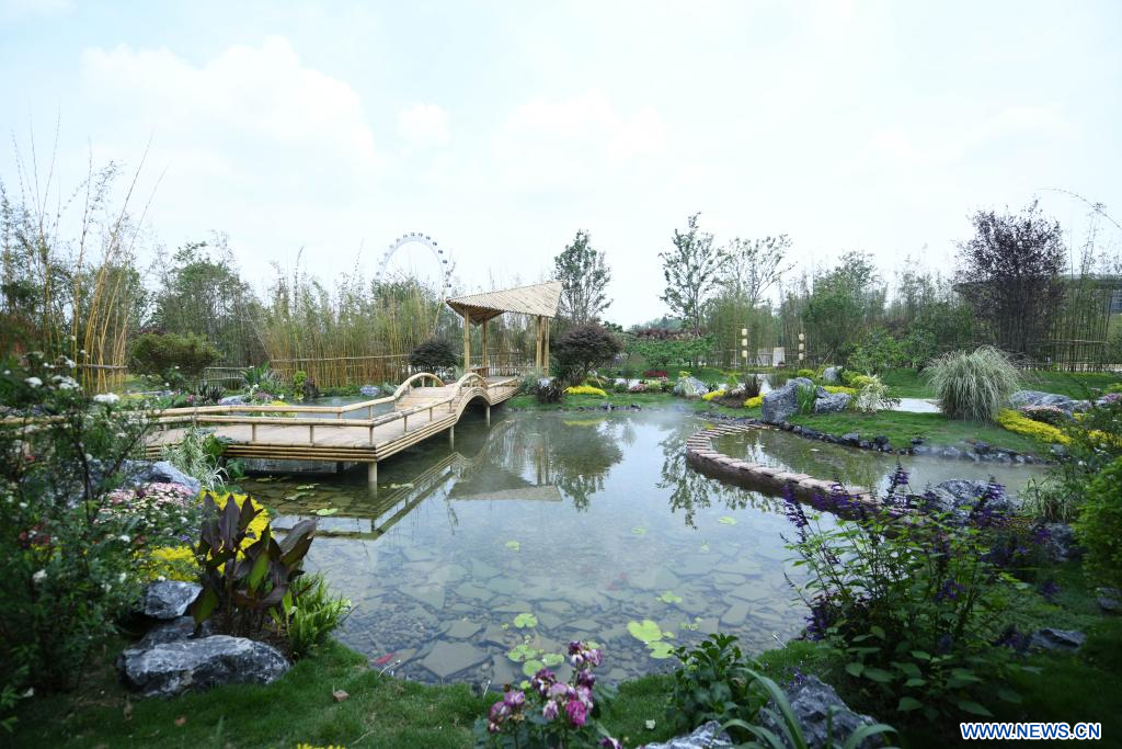 CHENGDU, 26 abril, 2024 (Xinhua) -- Imagen del 26 de abril de 2024 del jardín de Meishan de la Exposición Internacional de Horticultura 2024 Chengdu, en Chengdu, en la provincia de Sichuan, en el suroeste de China. La Exposición Internacional de Horticultura 2024 Chengdu se inauguró el viernes en Chengdu, capital de la provincia de Sichuan, en el suroeste de China. Con un caleidoscopio de tecnologías hortícolas y artes de jardinería nacionales y extranjeras exhibidas durante el evento, ofrece un "manual 101" completo e in situ para los devotos de la jardinería de todo el mundo. (Xinhua/Xu Bingjie)