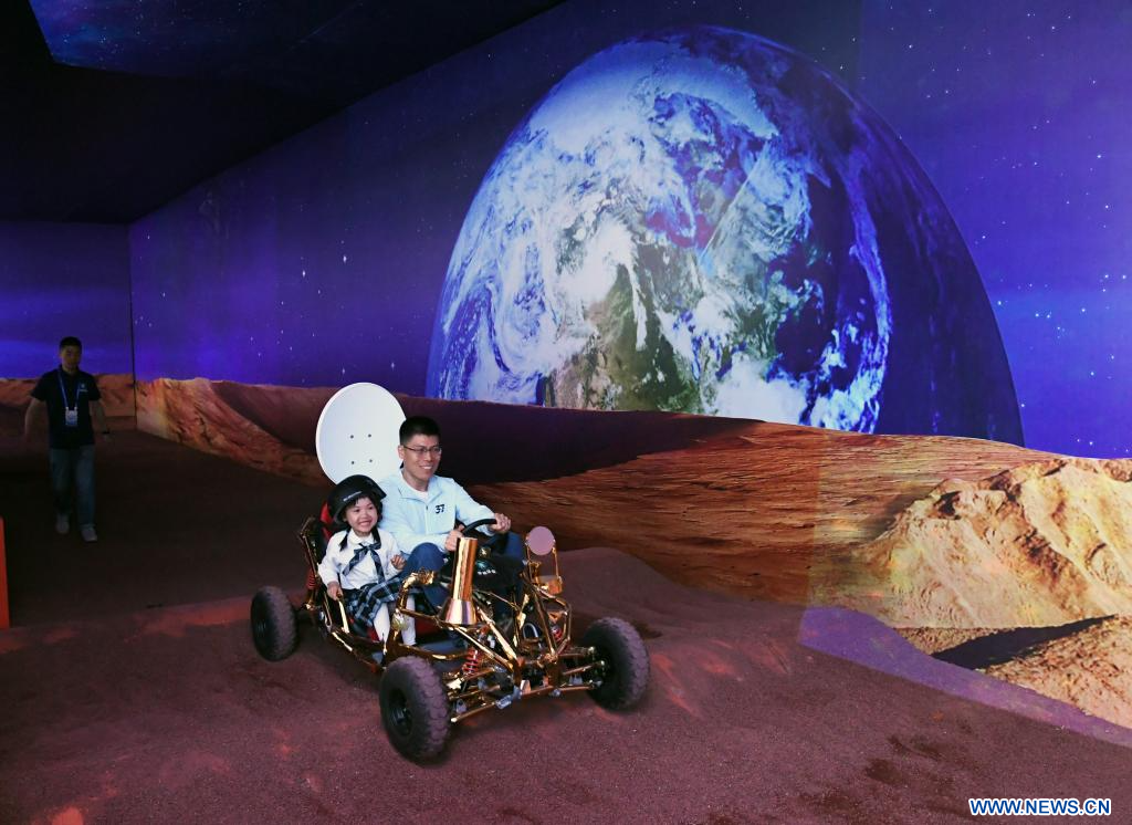 BEIJING, 27 abril, 2024 (Xinhua) -- Visitantes toman un rover simulado en un carnaval de ciencia ficción junto con la Convención de Ciencia Ficción de China (CSFC, por sus siglas en inglés) 2024, en Beijing, capital de China, el 27 de abril de 2024. La CSFC 2024 comenzó el sábado en el parque de Shougang de Beijing, con una ceremonia de inauguración, foros, eventos promocionales de la industria y proyecciones de películas programadas. Un carnaval de ciencia ficción también se lleva a cabo durante la convención de este año. (Xinhua/Ren Chao)