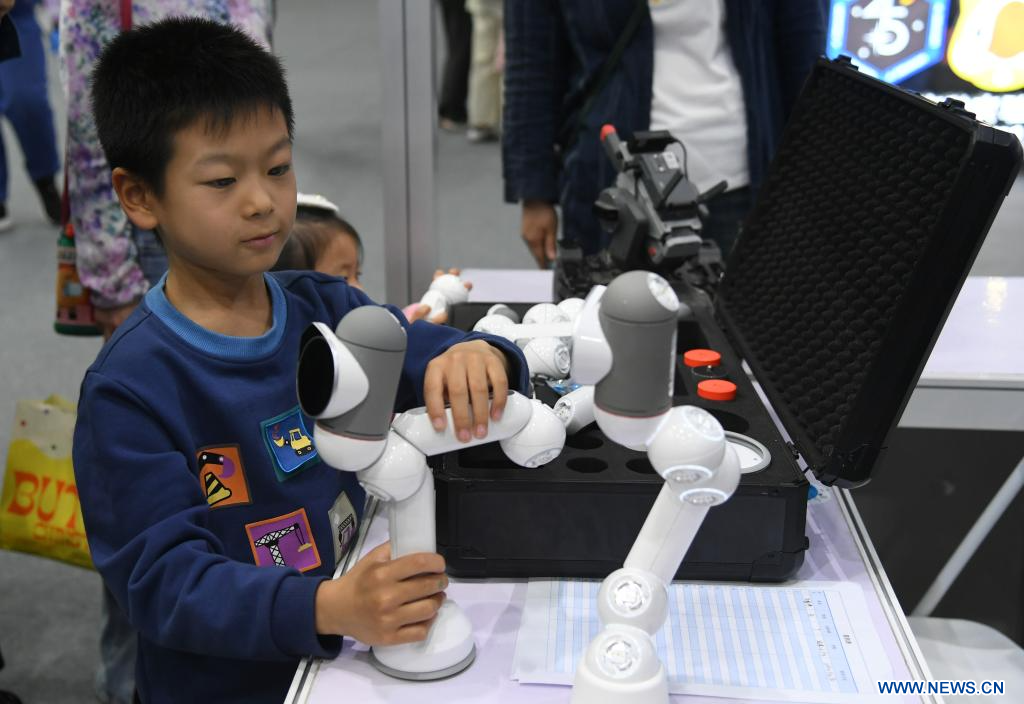 BEIJING, 27 abril, 2024 (Xinhua) -- Un niño ensambla un robot en un carnaval de ciencia ficción junto con la Convención de Ciencia Ficción de China (CSFC, por sus siglas en inglés) 2024, en Beijing, capital de China, el 27 de abril de 2024. La CSFC 2024 comenzó el sábado en el parque de Shougang de Beijing, con una ceremonia de inauguración, foros, eventos promocionales de la industria y proyecciones de películas programadas. Un carnaval de ciencia ficción también se lleva a cabo durante la convención de este año. (Xinhua/Ren Chao)
