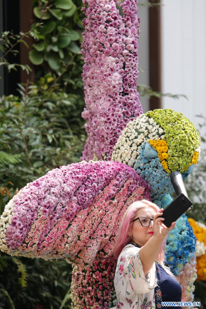 CIUDAD DE MEXICO, 27 abril, 2024 (Xinhua) -- Imagen del 26 de abril de 2024 de una turista tomando fotografías de una instalación decorada con flores durante el Festival Flores y Jardines, en la Ciudad de México, capital de México. (Xinhua/Francisco Cañedo)
