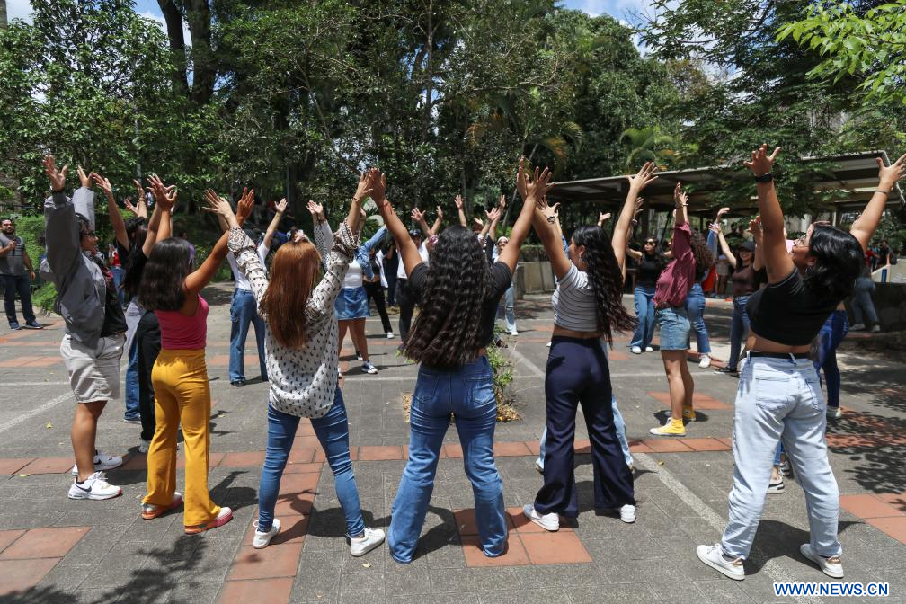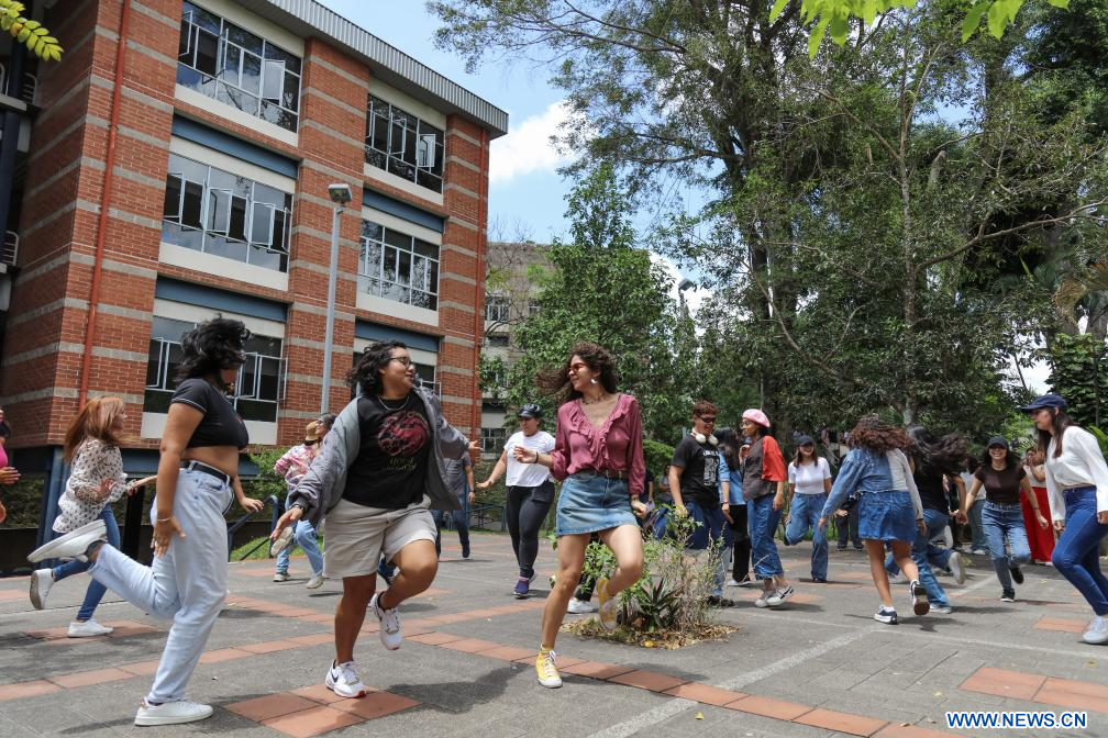 SAN SALVADOR, 29 abr (Xinhua) -- Decenas de bailarines y estudiantes de la Universidad Centroamericana (UCA) de la capital salvadoreña "tomaron" este lunes las plazas de la casa de estudios con una intervención artística o "flashmob" para celebrar el Día Internacional de la Danza y exaltar la fuerza expresiva de esta manifestación artística.