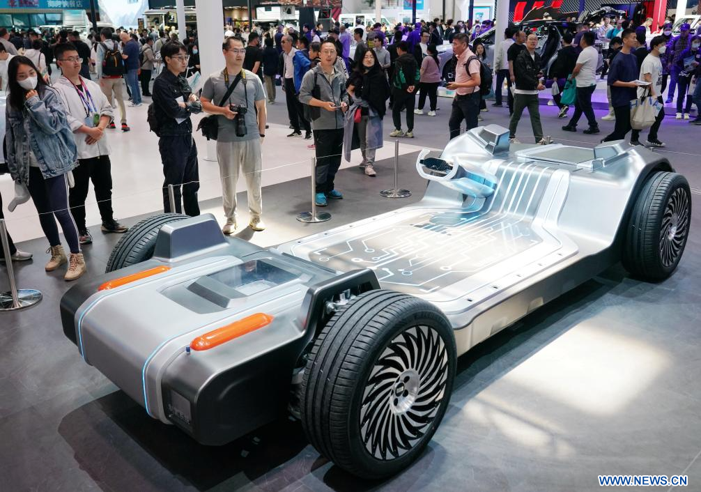 BEIJING, 30 abril, 2024 (Xinhua) -- Visitantes observan un chasis digital de IA de Geely en la Exhibición Internacional del Automóvil de Beijing 2024, en Beijing, China, el 30 de abril de 2024. La Exhibición Internacional del Automóvil de Beijing 2024, un evento de primer nivel que continuará hasta el 4 de mayo, presenta un número sin precedentes de vehículos de nueva energía (NEVs, por sus siglas en inglés), con 278 modelos distintos de NEVs en exhibición, lo que refleja el creciente predominio de los NEVs en la industria automotriz. Las tecnologías de vanguardia, las novedades orientadas para el cliente y la asequibilidad han cautivado a los visitantes de la exhibición y han puesto de relieve cómo el sector chino de los NEVs ha conseguido avanzar a pasos agigantados en la última década. Un informe reciente de la firma de investigación de mercado global International Data Corporation predijo que las ventas globales de automóviles de conducción inteligente mantendrán un rápido crecimiento, y el desarrollo de la conducción inteligente potenciada por la inversión en inteligencia artificial y la expansión de los escenarios de aplicaciones de conducción no tripulada son importantes tendencias del mercado en el futuro. (Xinhua/Zhang Chenlin)