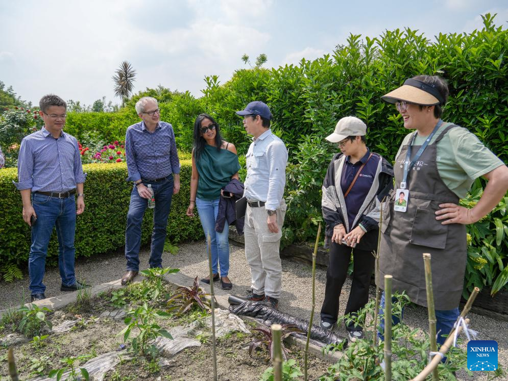 CHENGDU, 29 abril, 2024 (Xinhua) -- Imagen del 25 de abril de 2024 de Qiu Yamin (d), embajador de promoción de la Exposición Internacional de Horticultura 2024 Chengdu, liderando un equipo de criadores internacionales durante su visita al "Jardín de Heidi y Lulu", en Chengdu, en la provincia de Sichuan, en el suroeste de China. (Xinhua)