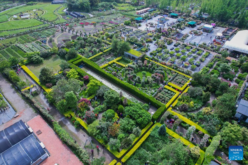 CHENGDU, 29 abril, 2024 (Xinhua) -- Vista aérea tomada con un dron el 21 de abril de 2024 del "Jardín de Heidi y Lulu", en Chengdu, en la provincia de Sichuan, en el suroeste de China. (Xinhua)