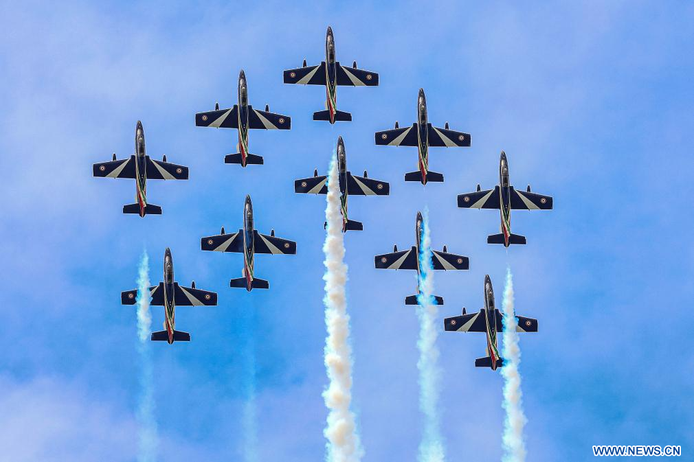 Escuadrón de acrobacia aérea italiano realiza presentación durante espectáculo aéreo
