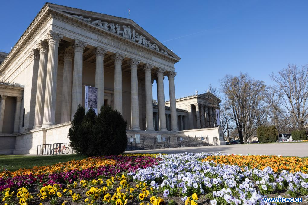 BUDAPEST, 2 mayo, 2024 (Xinhua) -- Imagen del 17 de marzo de 2024 de flores vistas floreciendo frente al Museo de Bellas Artes, en Budapest, Hungría. (Xinhua/Attila Volgyi)