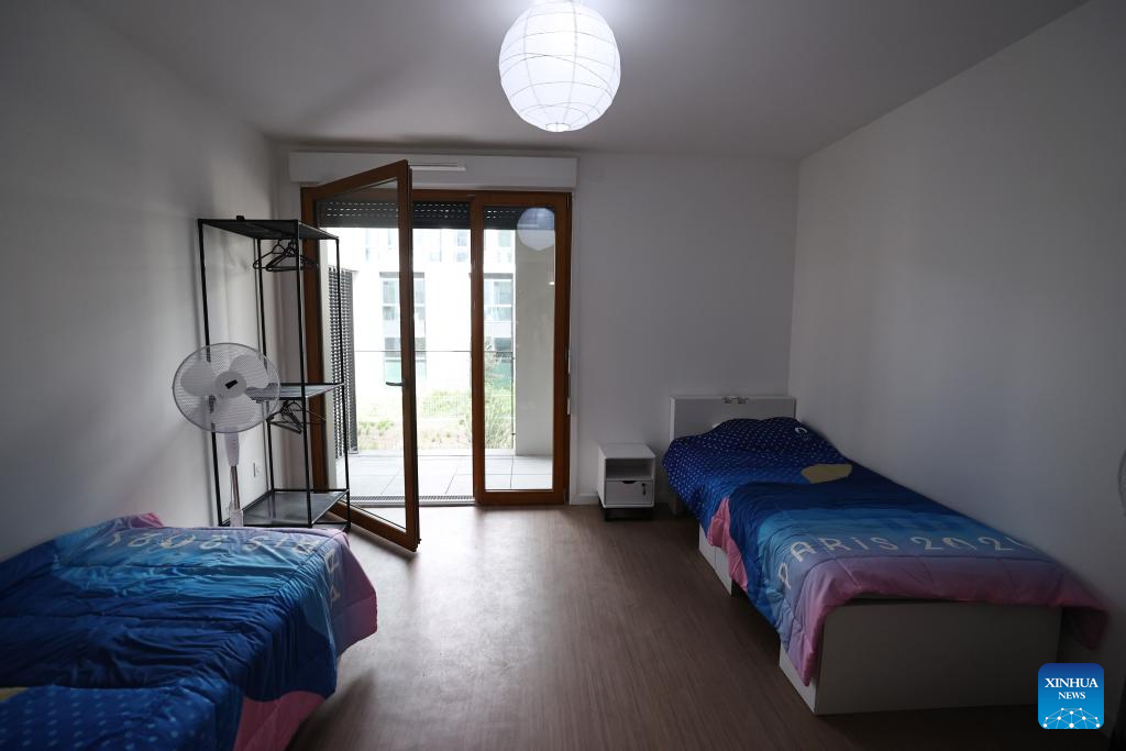 SAINT DENIS, 5 junio, 2024 (Xinhua) -- Imagen del 4 de junio de 2024 de una vista interior de una habitación en la Villa Olímpica y Paralímpica de París 2024 durante una gira de prensa, en Saint Denis, cerca de París, Francia. (Xinhua/Gao Jing)