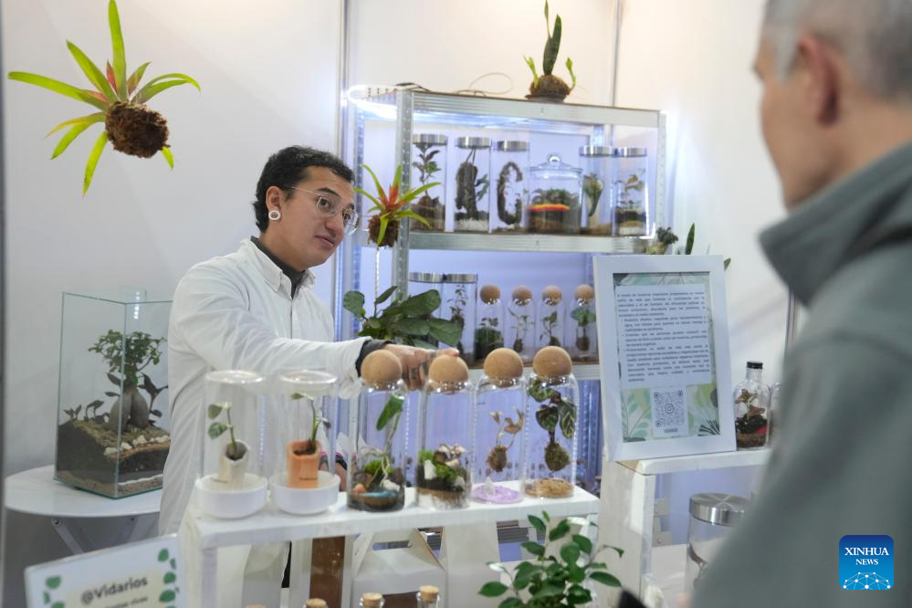 MONTEVIDEO, 6 junio, 2024 (Xinhua) -- Un expositor muestra sus productos a un participante durante la Tercera Expo "Uruguay Sostenible" organizada por el Ministerio de Ambiente que busca promover el desarrollo sostenible y el cuidado del ambiente, en el Antel Arena, en Montevideo, capital de Uruguay, el 6 de junio de 2024. (Xinhua/Nicolás Celaya)