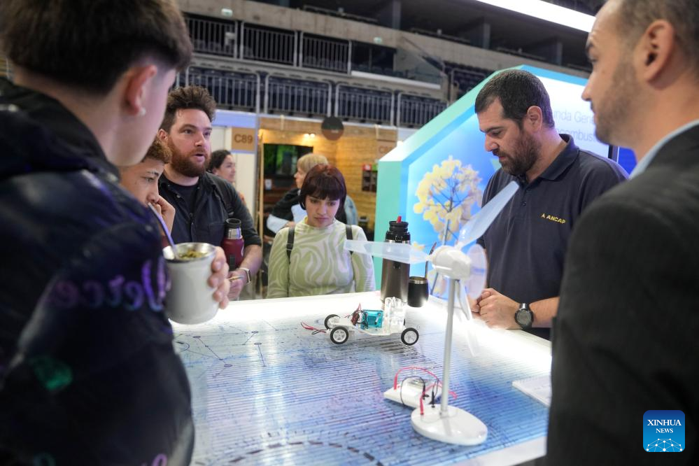 MONTEVIDEO, 6 junio, 2024 (Xinhua) -- Participantes observan un automóvil de juguete funcionando con hidrógeno durante la Tercera Expo "Uruguay Sostenible" organizada por el Ministerio de Ambiente que busca promover el desarrollo sostenible y el cuidado del ambiente, en el Antel Arena, en Montevideo, capital de Uruguay, el 6 de junio de 2024. (Xinhua/Nicolás Celaya)