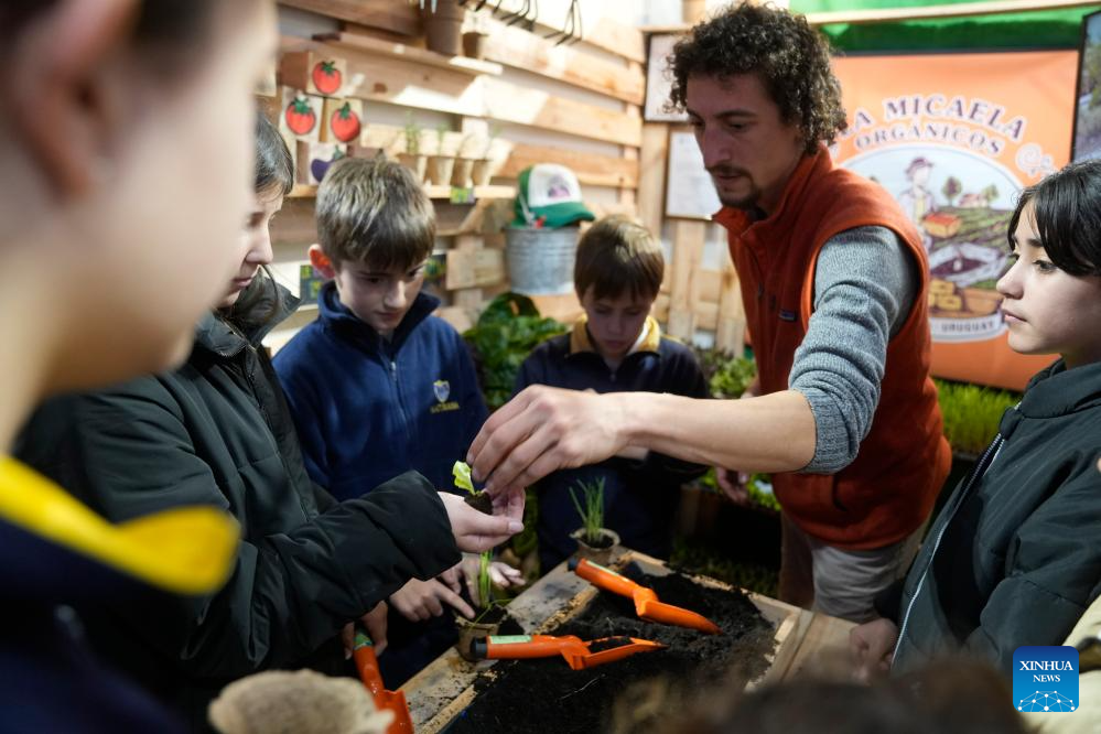 MONTEVIDEO, 6 junio, 2024 (Xinhua) -- Estudiantes participan en la Tercera Expo "Uruguay Sostenible" organizada por el Ministerio de Ambiente que busca promover el desarrollo sostenible y el cuidado del ambiente, en el Antel Arena, en Montevideo, capital de Uruguay, el 6 de junio de 2024. (Xinhua/Nicolás Celaya)