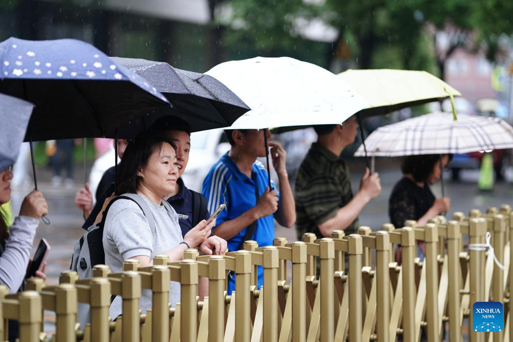 HEFEI, 7 junio, 2024 (Xinhua) -- Aspirantes esperan para los exámenes en un sitio del examen nacional de ingreso a la universidad, en Hefei, en la provincia de Anhui, en el este de China, el 7 de junio de 2024. El examen nacional de ingreso a la universidad de China, conocido como Gaokao, comenzó el viernes. (Xinhua/Huang Bohan)