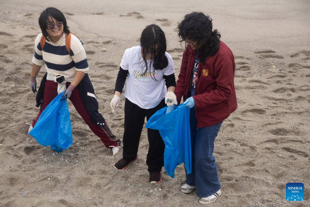 LIMA, 8 jun (Xinhua) -- Peruanos se unieron este sábado a la celebración del Día Mundial de los Océanos con una gran limpieza de playa en el distrito de Magdalena del Mar, en la ciudad de Lima, para concientizar a la población sobre la importancia de mantener bien cuidados estos espacios.
