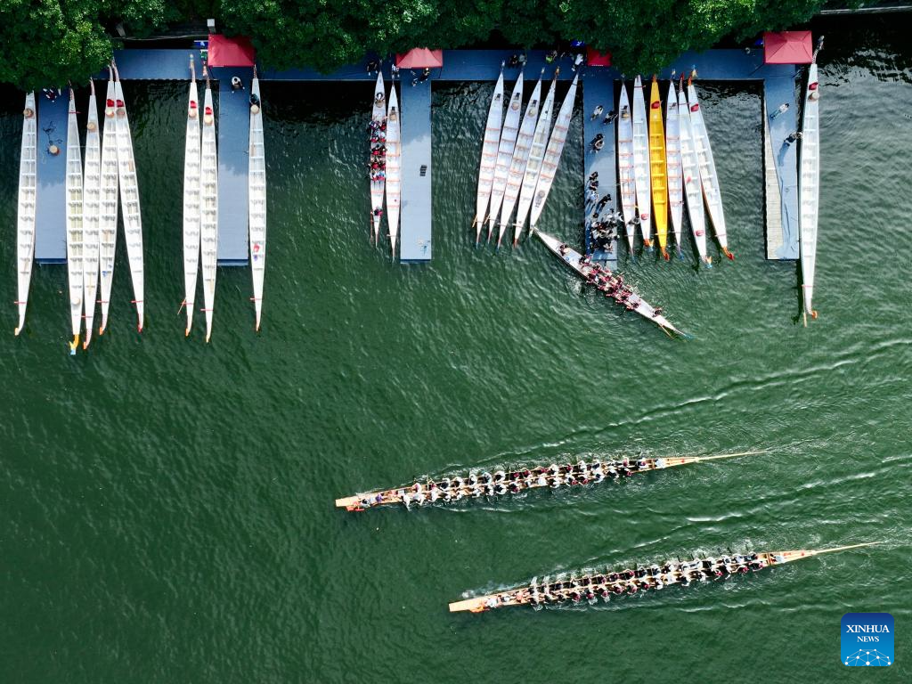 Se celebran carreras de botes del dragón en varios lugares en China para celebrar el próximo Festival Duanwu